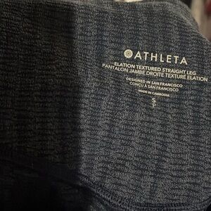 Athleta Navy straight leg with a unique textured design. Ideal for workouts or casual outings. Inside waist hidden pocket. Very good condition. Sz SP