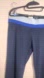 Comfortable yoga pants with a navy body and light blue waistband. Ideal for exercise or lounging.