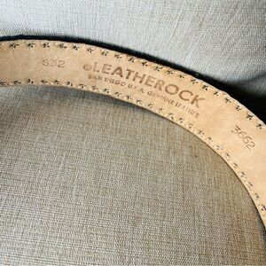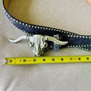 Genuine, leather leather rock, steer skull and silver with silver studs. Black and gray genuine leather belt. Excellent condition.