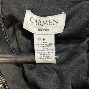 Carmen Marc Valvo Black & White Houndstooth Knit Midi Dress Sleeveless