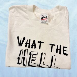 White t-shirt featuring bold black text “What the hell am I doing out of bed?”. Casual and stylish with sought after single stitching. Preshrunk cotton. Men’s L
