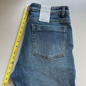 Elevate your style with these elegant dark blue flare jeans. Perfect for a chic and comfortable look.