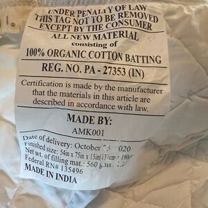 COYUCHI Organic Cotton Mattress Pad - FULL Size. Like new perfect condition and includes original bag with handles.