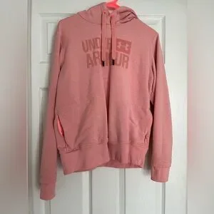 The Under Armour Pink Cozy Loose Coupe Lache Small Women’s Hoodie is a stylish and comfortable activewear piece for women. Made of 100% cotton with a cotton lining, this pullover hoodie features a round neckline and a hood for added warmth during the winter, fall, or spring seasons. The pink color and logo accents add a touch of style to the regular fit design, making it perfect for gym workouts or running. Machine washable and designed for gym & training, this Under Armour hoodie is a versatile addition to any active woman's wardrobe.
