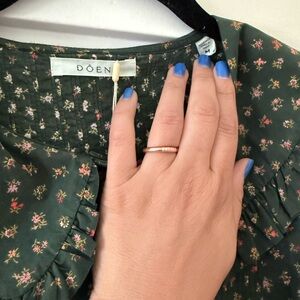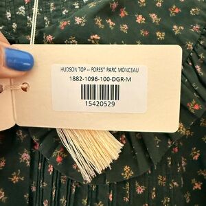 Doen Hudson Top: Floral Green Blouse with Ruffled Collar (M)