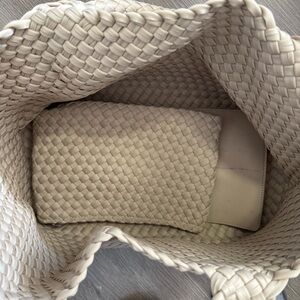 Hi! Is this ecru? Also are stains mostly inside and on handle of tote? Are there marks on the outside of the tote other than the handle?