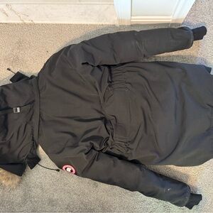 Sleek black puffer jacket by Canada Goose. Ideal for cold weather. Features durable design and practical pockets. Barely worn - like new. Removable fur hood