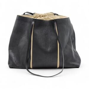 Maison Margiela Large Tote Bag - Black Leather & Canvas Drawstring – Eco Sustainable