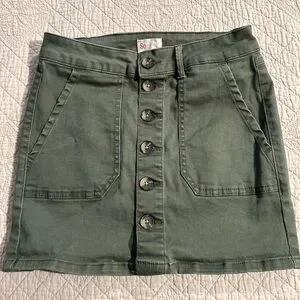 Stylish green skirt with button-front design from the brand So. Features large front pockets and is a junior size 12.