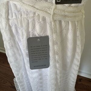 Donna Ricco White Maxi Bow Shoulder Belted Lace Dress