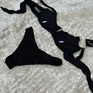 Stylish and comfortable, this black swimwear set is perfect for your beach outings. Enjoy a sleek look with this elegant design. Size is Medium