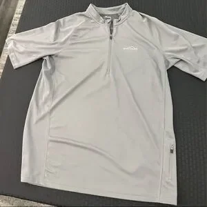Eddie Bauer Men light grey Large Tall short sleeve shirt with zipper.