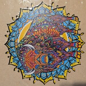 Dive into the intricate world of this 200-piece wooden puzzle, showcasing a vibrant mandala design with rich blues and warm orange tones. The puzzle's geometric patterns and decorative elements offer a challenging and rewarding experience for puzzle enthusiasts. Perfect for those who appreciate high-quality craftsmanship and artistic designs.