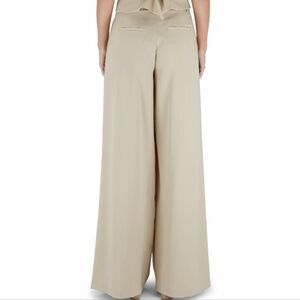 Nili Lotan Dilon Buff Pleated High Waist Ultra Wide Leg Raw Hem Khaki Pants