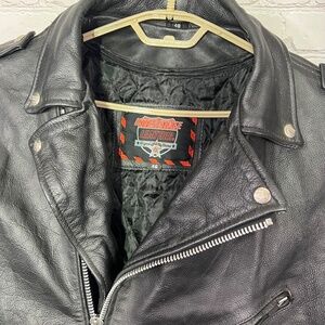 🏍️|•INTERSTATE LEATHER•| HEAVY Black Leather Biker Jacket Size 46 / XL
