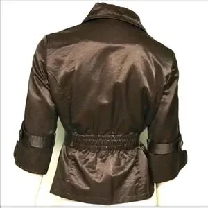▪️Matching Chocolate Brown Satin Covered Front 2-Button Closure ▪️Matching Chocolate Brown Tie Belt at Waist