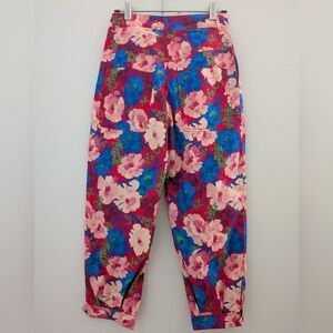 NWT Zara Bold Floral Cropped Cargo Ankle Pants Size S High Waist Pink Red Blue