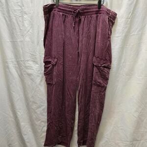 Torrid maroon acid wash cargo lounge pants elastic waistband drawstring size 2S