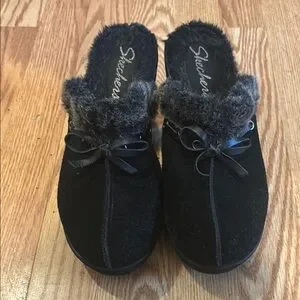 Skechers Black Cozy Mule Clogs with Faux Fur