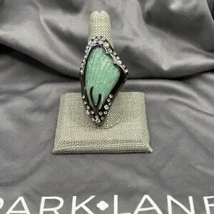 This gorgeous NWT super rare discontinued Park Lane “Papillon” ring features aurora borealis crystals and an ornate hematite setting with a dark aqua butterfly wing shaped stone. Perfect for adding a touch of glamour to any outfit.