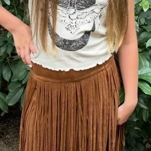 Stylish brown skirt with fringe detail. Perfect for playful outings.