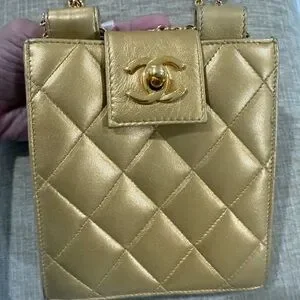 CHANEL Gold Quilted Crossbody Bag with Chain