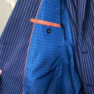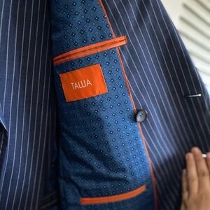TALLIA Blue Pinstripe Suit with Notch Lapels
