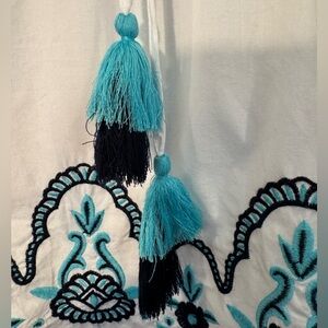 Crown & Ivy Embroidered Tunic Top - Boho Tassel Detail - Size S Petite