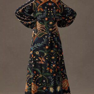 Anthropologie Farm Rio Long Sleeve Button-Front Floral Midi Dress