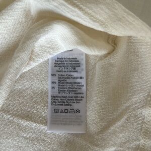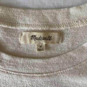 Like new condition. Super soft and unique fabric. Feels like a mix of vintage linen and soft towels. For a form fitting fit, this is true to size. I am typically an xs in Madewell and wore this as a more relaxed fit. Perfect.