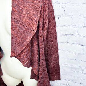 GORGEOUS BELLDINI COPPER BOWN SUBTLE SEQUIN CASCADING OPEN CARDI SWEATER - SMALL