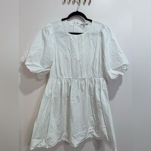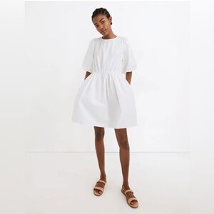 Madewell Poplin Crewneck Bubble-Sleeve Mini Dress |Size 10 | White | 100% Cotton