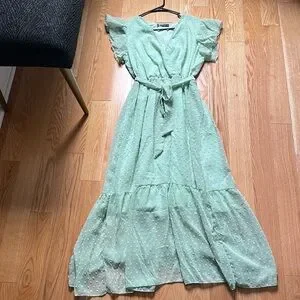 NWOT Bohemian Wrap V Neck Ruffle Cap Sleeveless Belt A-Line Midi Sun Dress