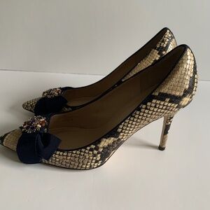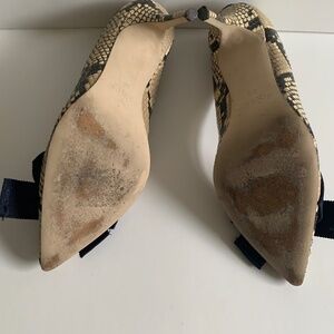 J. Crew Elsie Heel in Snake Embossed Leather with Bow, Pointy Toe Size 8.5