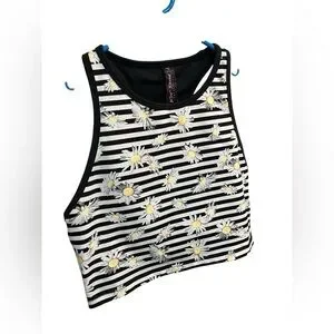 Betsey Johnson Black and White Stripped with Daisy’s Crop Tank Small -