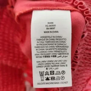 BODEN Pants Womens 6 Long 6L Red Linen Shirred Waist Trousers Wide Leg Pull On