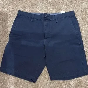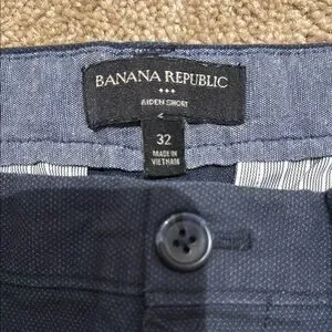 These Banana Republic shorts showcase a sleek flat front design in a vibrant blue hue, perfect for a polished and versatile look. Crafted with attention to detail, they offer a comfortable fit and a clean, modern silhouette. Ideal for casual outings, these shorts are a stylish wardrobe staple.