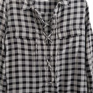 The lace-up detail adds a touch of edge to the classic plaid print, giving you an effortless and stylish outfit option.
