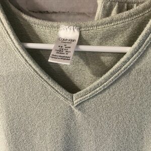 Good condition, women’s size M, 2 piece set, mint green, ultra soft, short sleeve, v-neck top, & elastic waist pull on shorts with logo tie & left side Calvin Klein logo on the short sleep set.