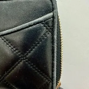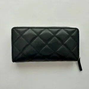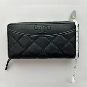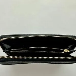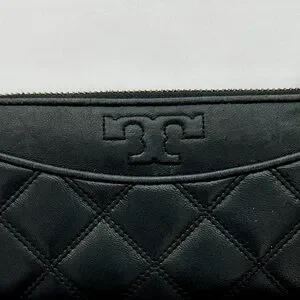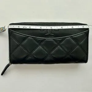 Authentic Tory Burch Savannah Continental Black Quilted Zip Wallet Women’s