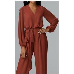 AW BRIDAL 16 2X plus rust orange Roxanne Long Sleeve Wide Leg Jumpsuit NEW 0b1
