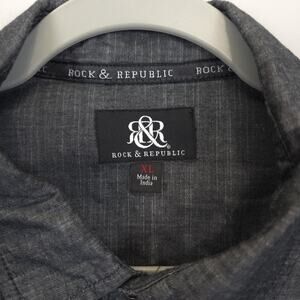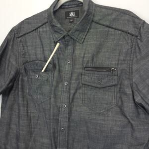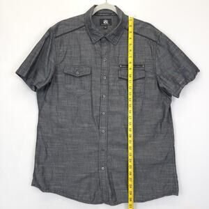 Rock & Republic Camp Button Down Shirt Flap Zip Pockets Short Sleeve Men XL Gray