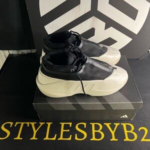 Sleek adidas sneakers. Black upper with white accents. Comfortable and stylish.