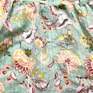 Torrid Top Woman’s Size 5X Smocked Cotton Clip Dot Blouson Sleeve Floral Green
