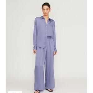 EVERLANE XS The Satin Pull-On Pant Wide Leg Lavender Purple Smocked Travel aa14