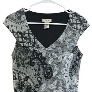 I.V.Y Y2K Midi Dress Black White Parsley Print Size 6