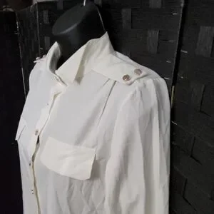 Discover elegance with this off-white button-down shirt, perfect for any occasion. Its classic design offers a sophisticated look. *Stock photo to show fit*