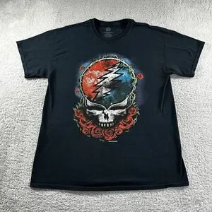 Grateful Dead Shirt Mens Large Black Skull Roses Vine Y2K Modern Retro Band Punk