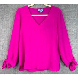 CeCe Long Sleeve Tie Cuff V Neck Blouse Women's Size XS Pink