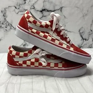 Vans Old Skool Checkerboard Racing Red Checkered Sneakers, Size 5.0